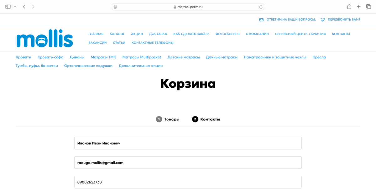 Если остались вопросы или проблемы с оформлением заказа, то пишите на адрес электронной почты dmt.matras@gmail.com