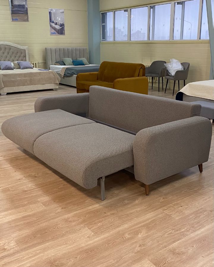Плавные линии и минималистичный дизайн делают этот диван универсальным элементом для любого интерьера, будь то светлая гостиная или приглушенный уголок отдыха.