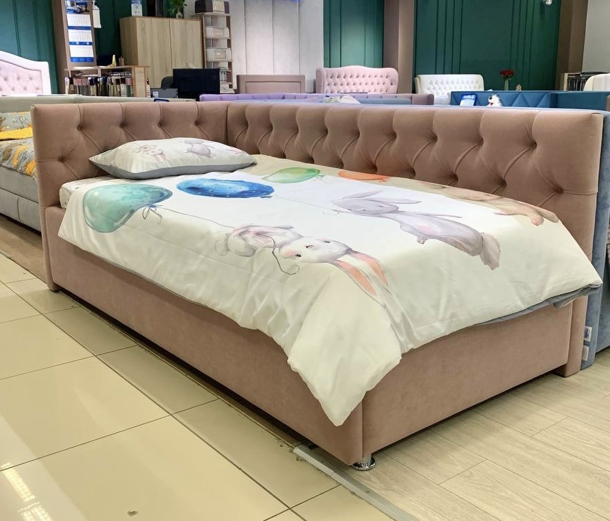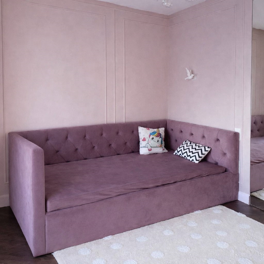 Женственная угловая кровать-софа "Алиса" — нежность и комфорт для детской спальни.