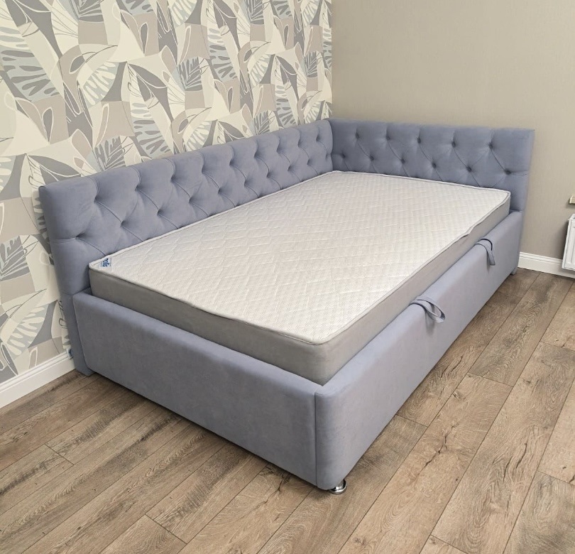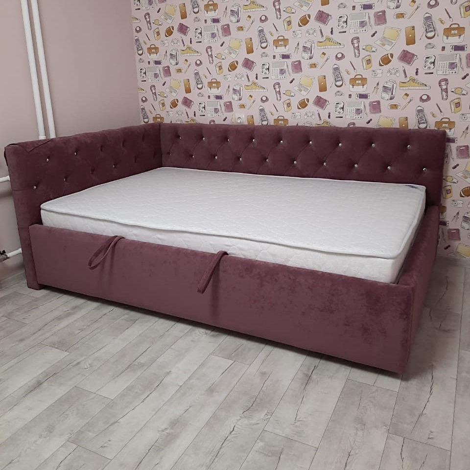 - Высота изголовья 85 см обеспечивает удобную опору и защиту. - Угловая конструкция позволяет оптимально использовать пространство, а расположение угла можно выбрать под планировку комнаты — слева или справа. - Толщина матраса до 15 см подходит для создания комфортной спальной зоны. - Задняя сторона обита прочной технической тканью (спанбонд), что очень практично. - Возможность выбора декора. При желании вместо пуговиц, Вы можете украсить кровать стразами для создания настоящего сказочного декора. |