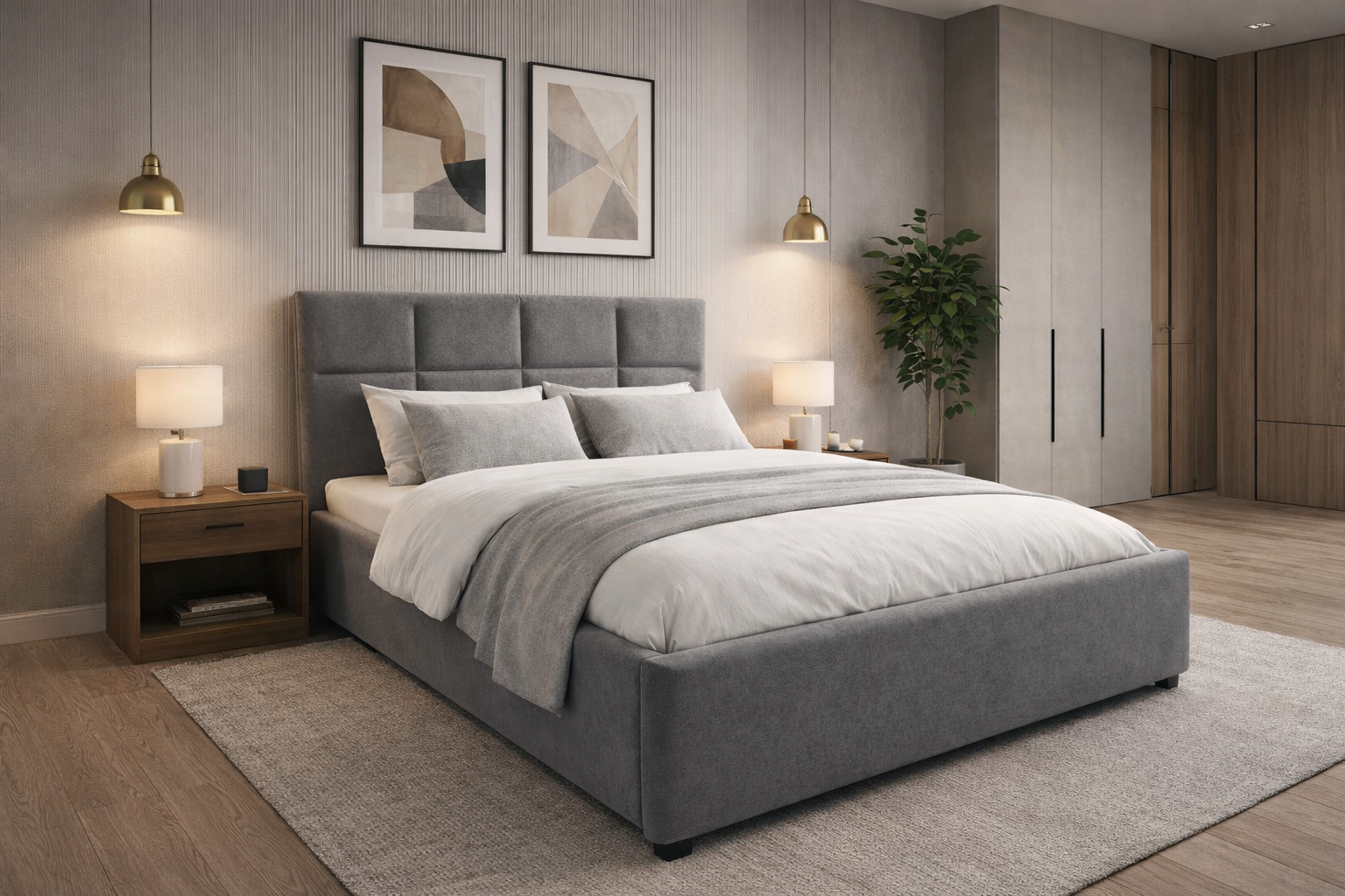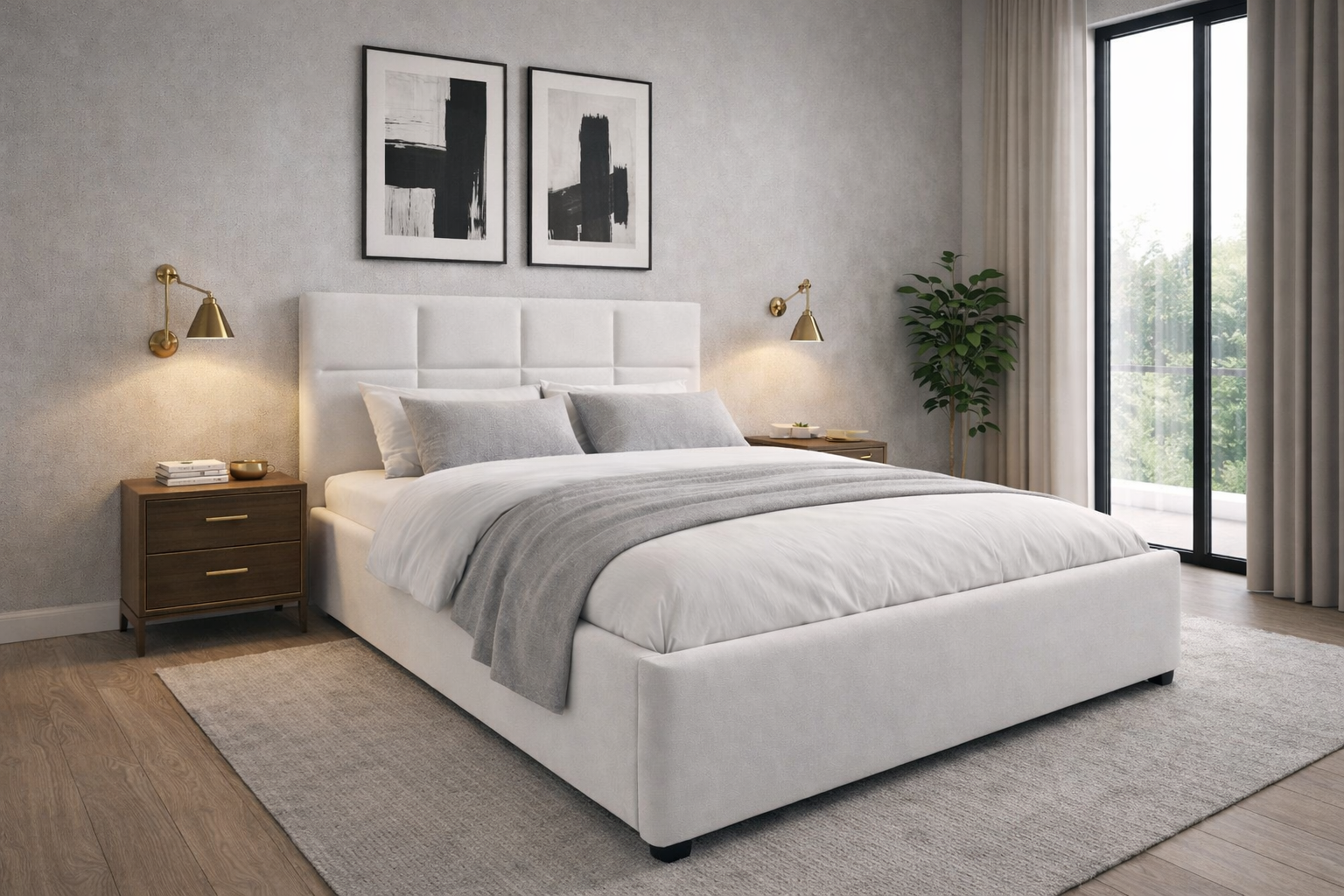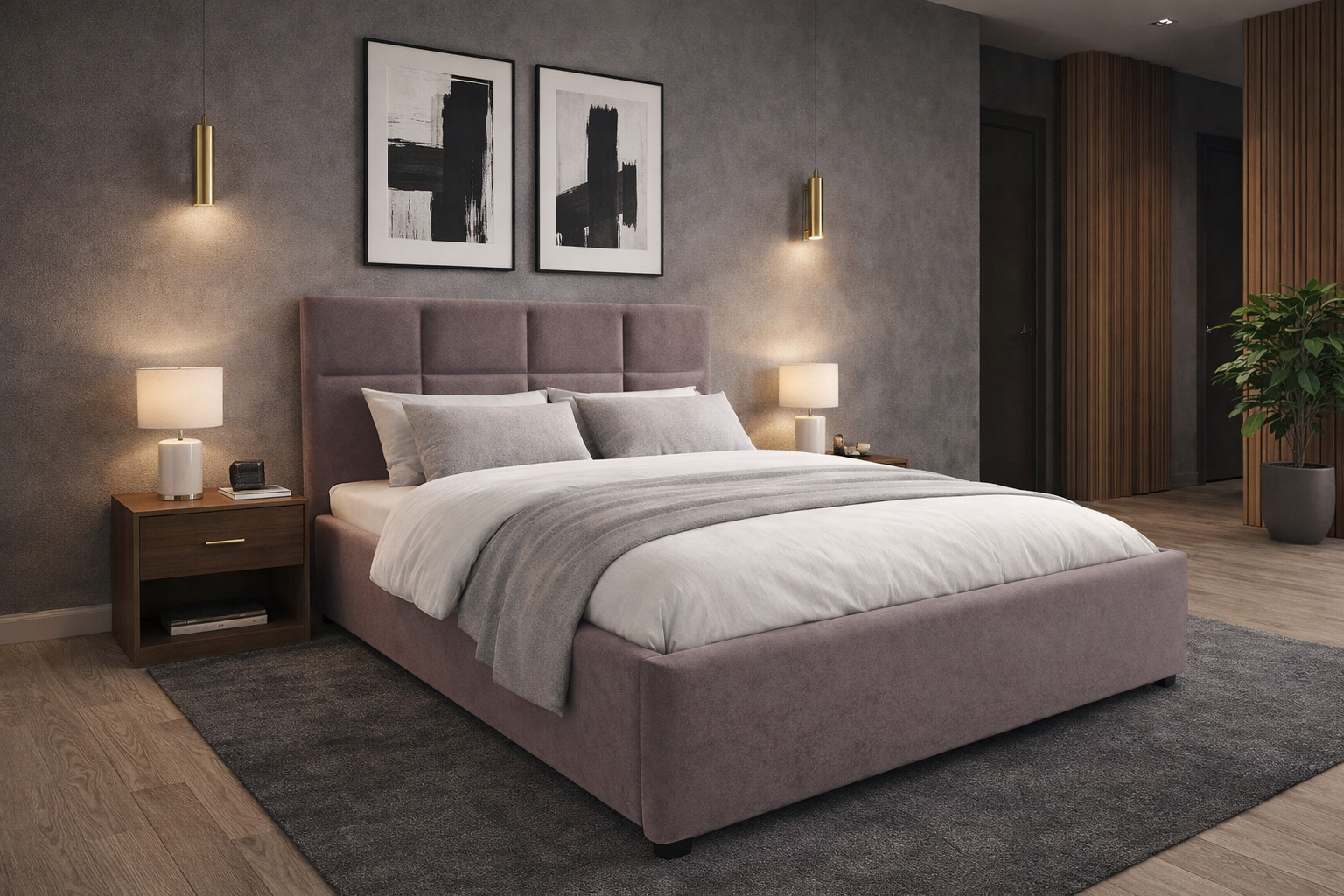 | Эта красивая современная кровать имеет оригинальное изголовье, которое поделено на 8 одинаковых частей в виде мягких панелей, что делает дизайн кровати интересным и запоминающимся. |