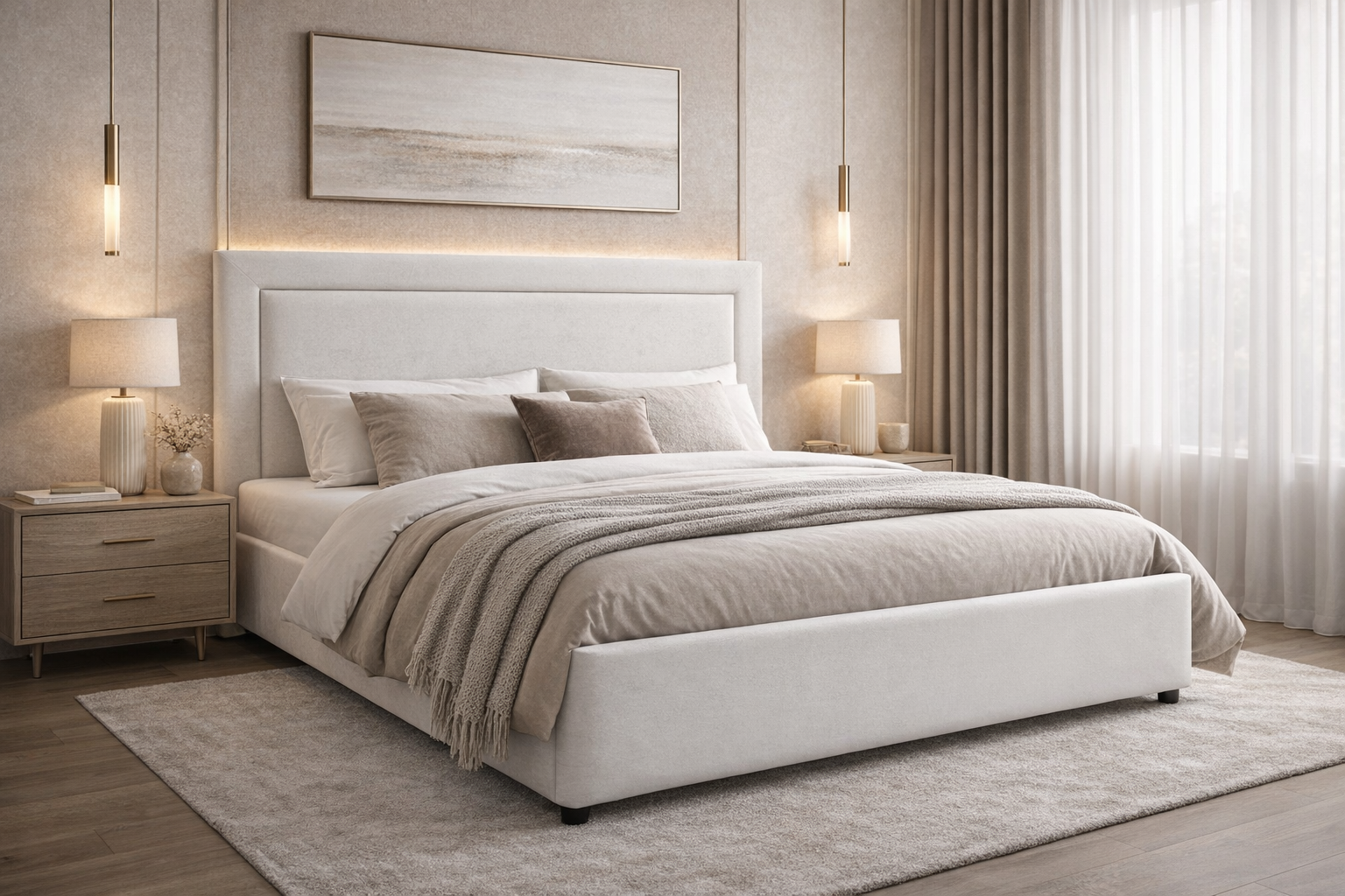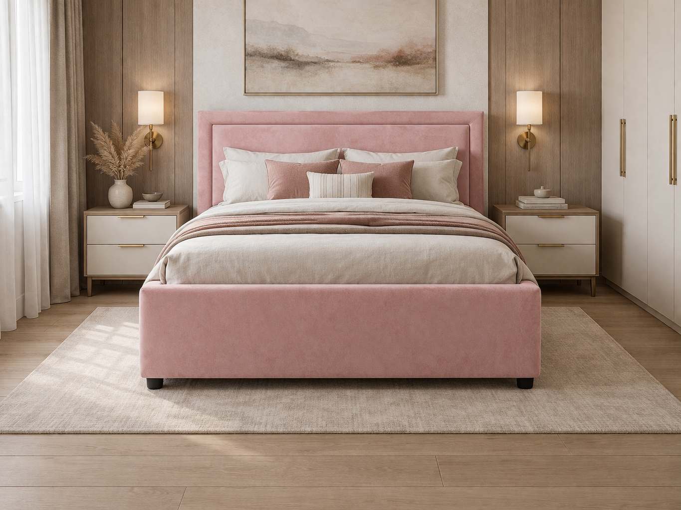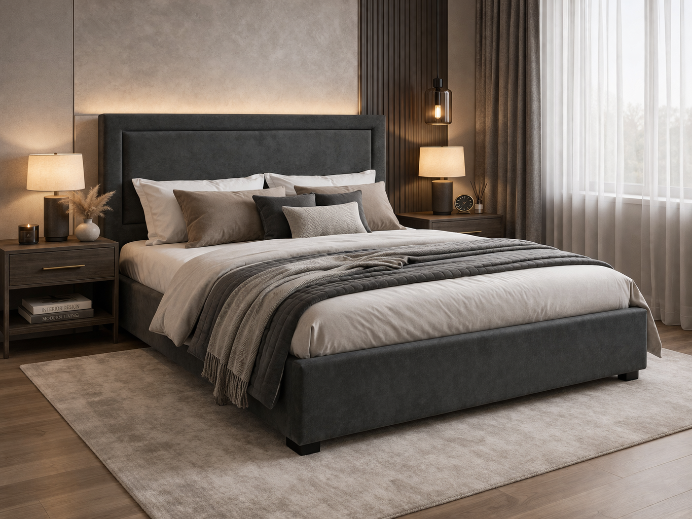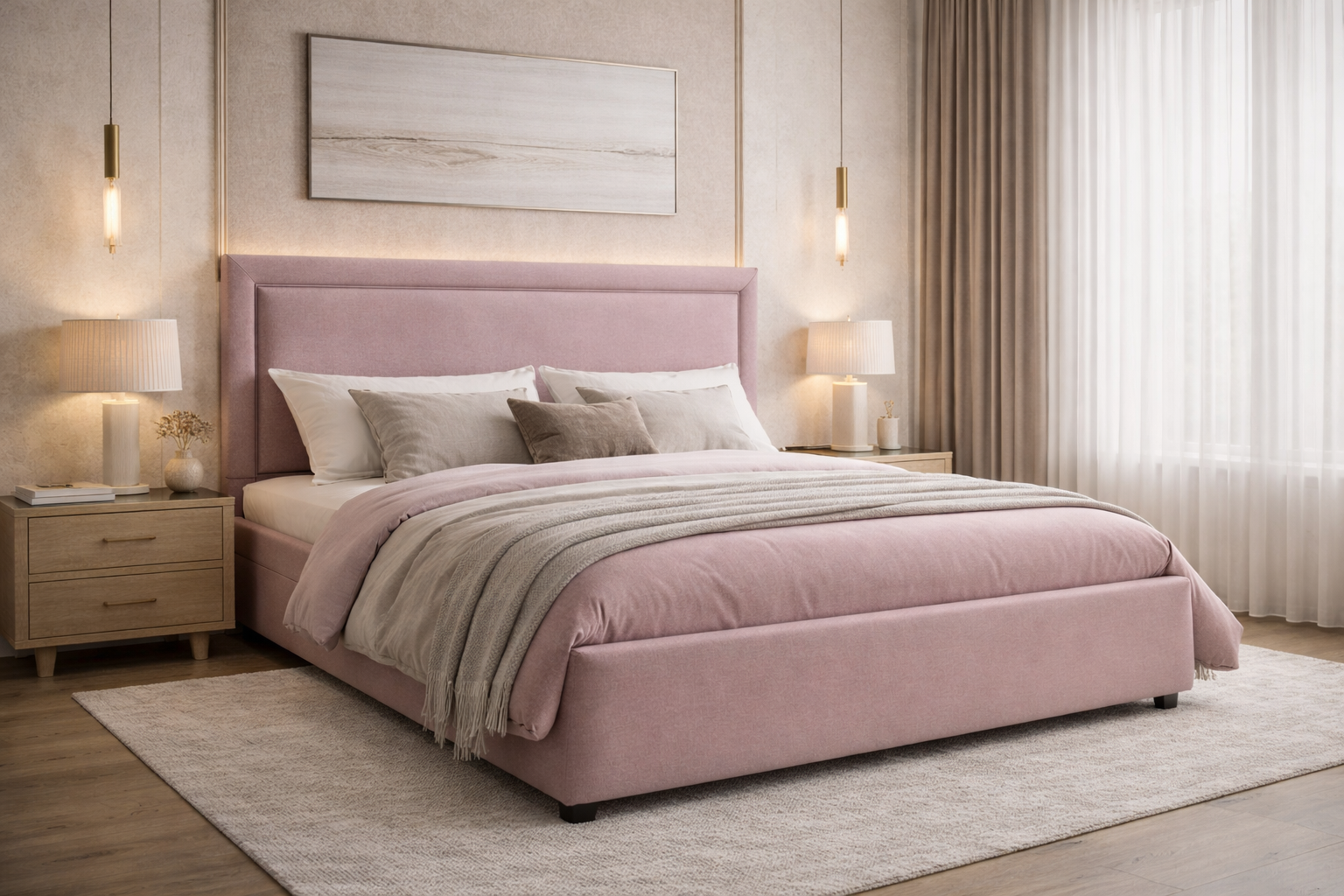 По желанию, граница между мягкими бортами и центральной частью изголовья, может быть украшена декоративными гвоздиками.