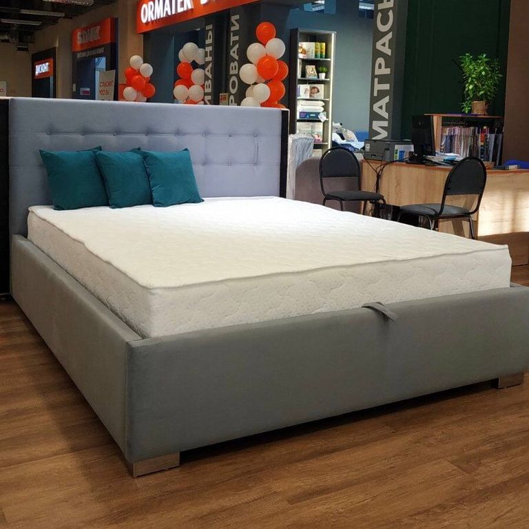 Вы можете заказать кровать с ортопедическим основанием, металлическим ортопедическим основанием, подъемным механизмом или основанием на высоких опорах.