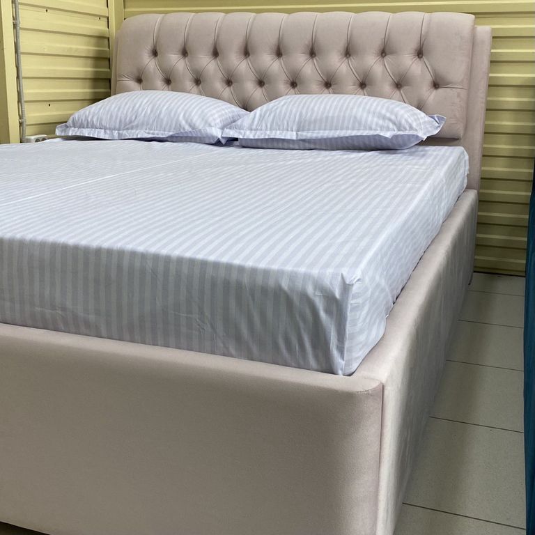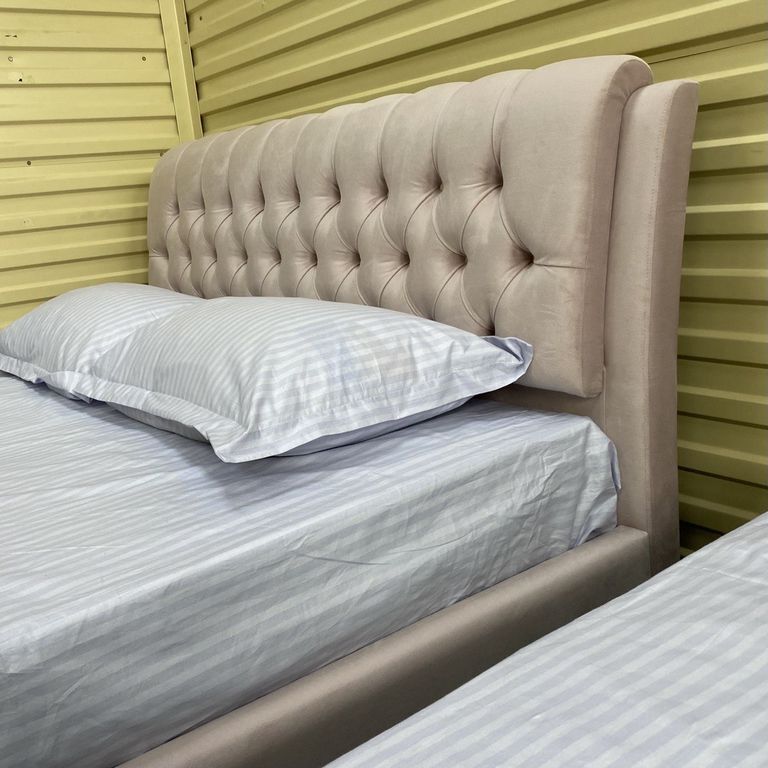 Изножье может быть выполнено в каретной стежке По желанию покупателя утяжки могут быть декорированы стразами диаметром 18мм, либо пуговицами диаметром 17мм в тон материала. |