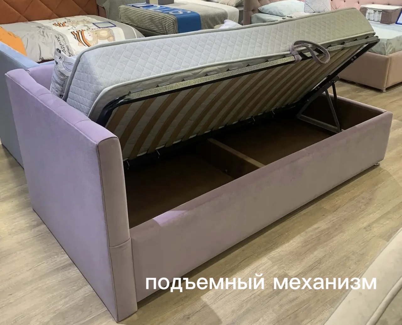 Модель может быть оснащена: подъемным механизмом с вместительным ящиком для спальных принадлежностей или удобным выдвижным ящиком(одним или двумя отдельными).