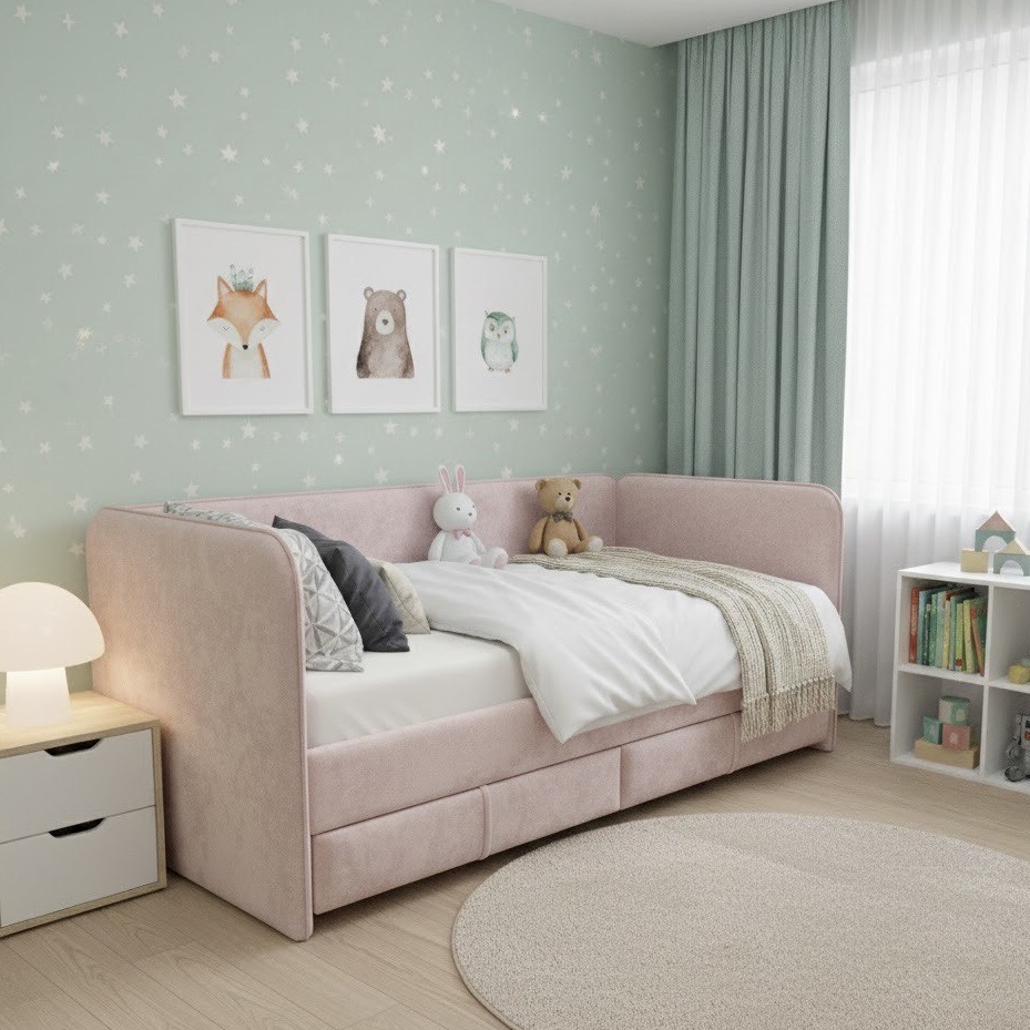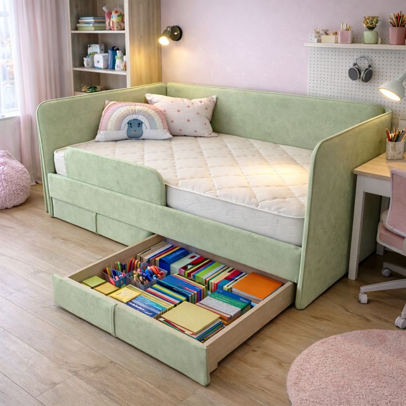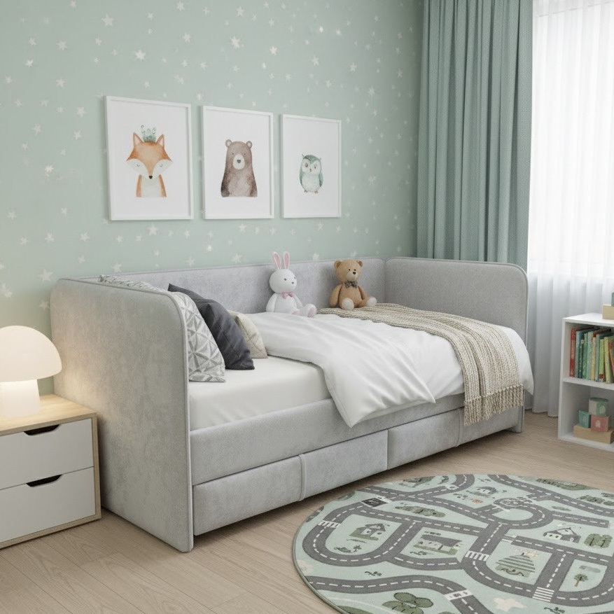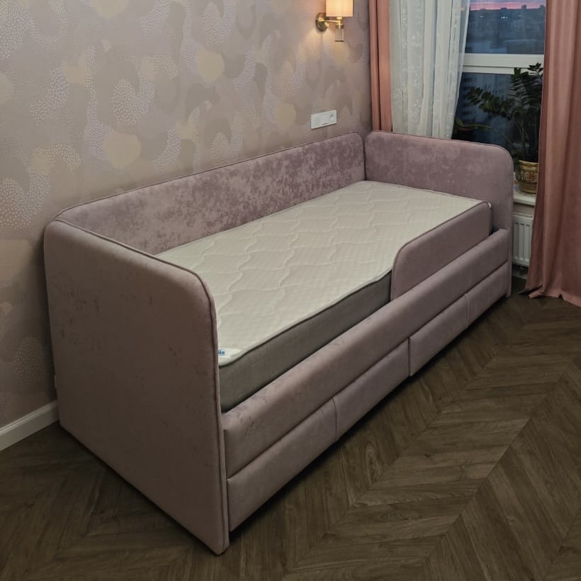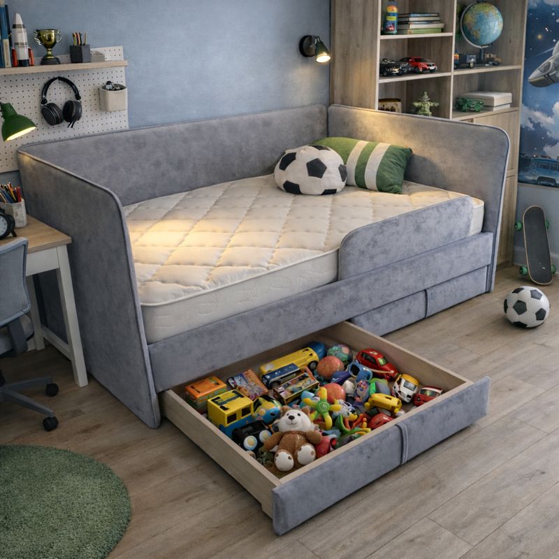 - Мягкие боковые панели обеспечивают дополнительный комфорт и защищают ребенка во время сна. - Низкая высота матраса до 15 см идеально подходит для детских и подростковых кроватей. - Уникальный дизайн спинок с элегантным кантом придаёт кровати изящность и стиль без лишних деталей. - Компактная толщина спинок (всего 6 см), позволяет сэкономить пространство и разместить кровать в небольшой комнате, не теряя качества и внешнего вида. - Практичные выдвижные ящики или подъемный механизм позволят вам получить дополнительное место для хранения постельного белья, игрушек и других вещей, что поможет поддерживать порядок в комнате. |
