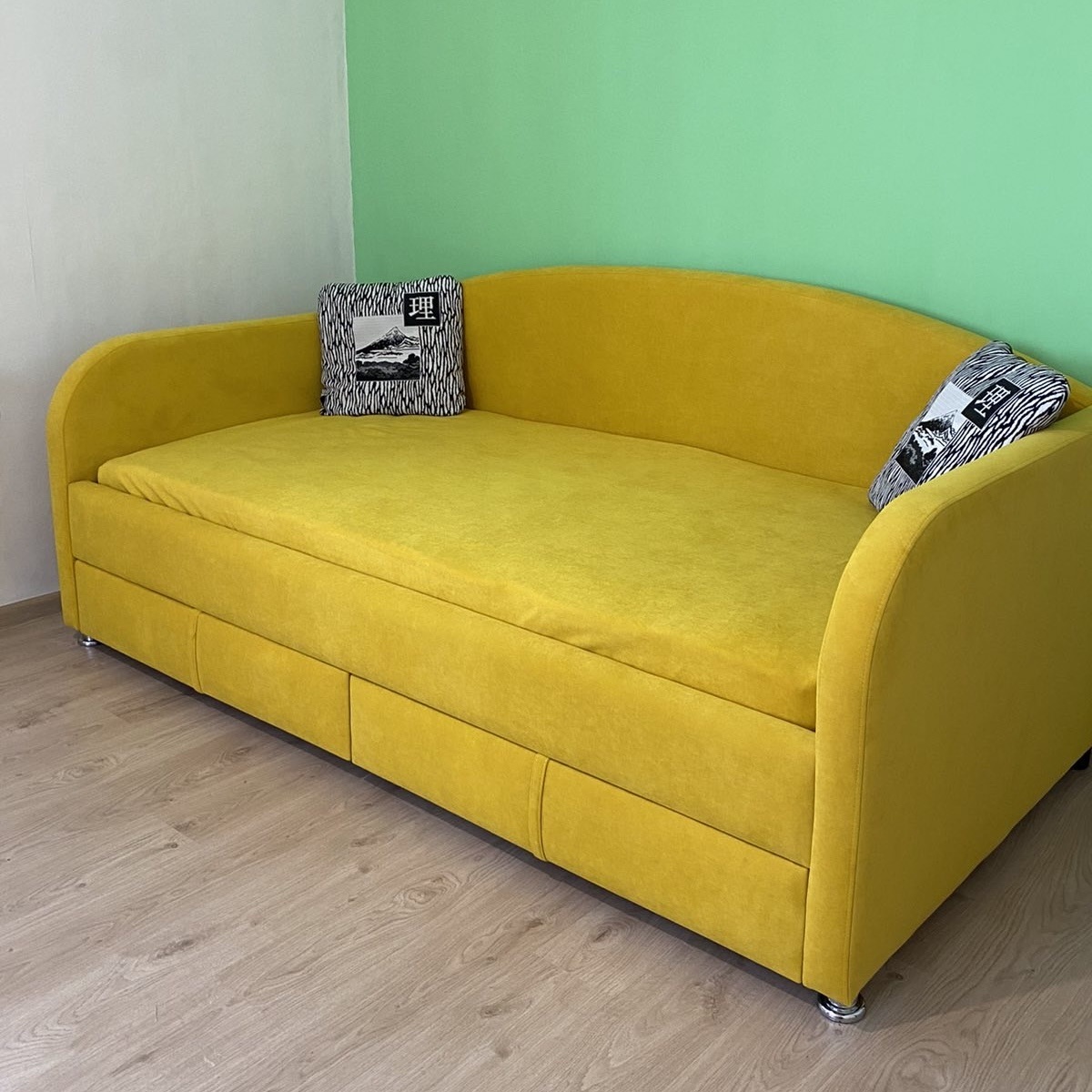 - Эргономичный дизайн: плавные, округлённые формы подлокотников и изголовья создают уютную атмосферу и безопасность, особенно для детской комнаты. Лаконичный стиль без излишних деталей гармонично впишется в любой интерьер. - Хромированные ножки высотой 5 см обеспечивают устойчивость и придают модели дополнительную лёгкость. - Оптимальная конструкция: подлокотники толщиной 11,5 см и спинка толщиной 10 см обеспечивают комфорт и удобную поддержку тела. Высота изголовья 85 см (от пола) идеально подходит для отдыха и чтения в сидячем положении. - Функциональность: кровать легко трансформируется, позволяя использовать её и как диванчик, и как полноразмерное спальное место. |