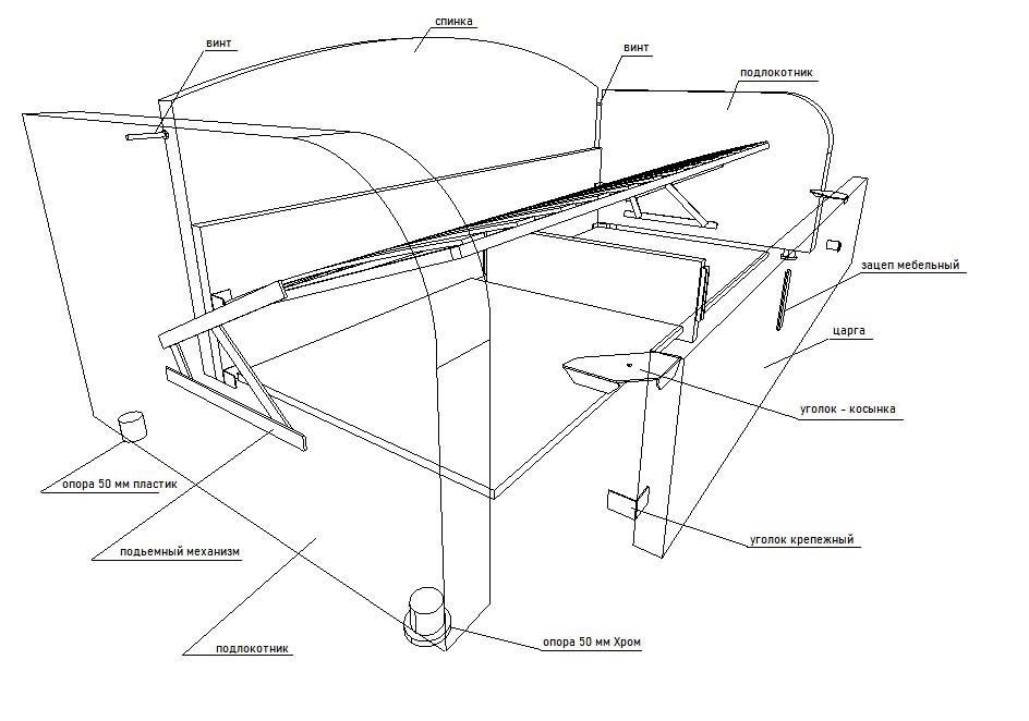 Модель может быть оснащена: подъемным механизмом с вместительным ящиком для спальных принадлежностей или удобным выдвижным ящиком(одним или двумя отдельными).