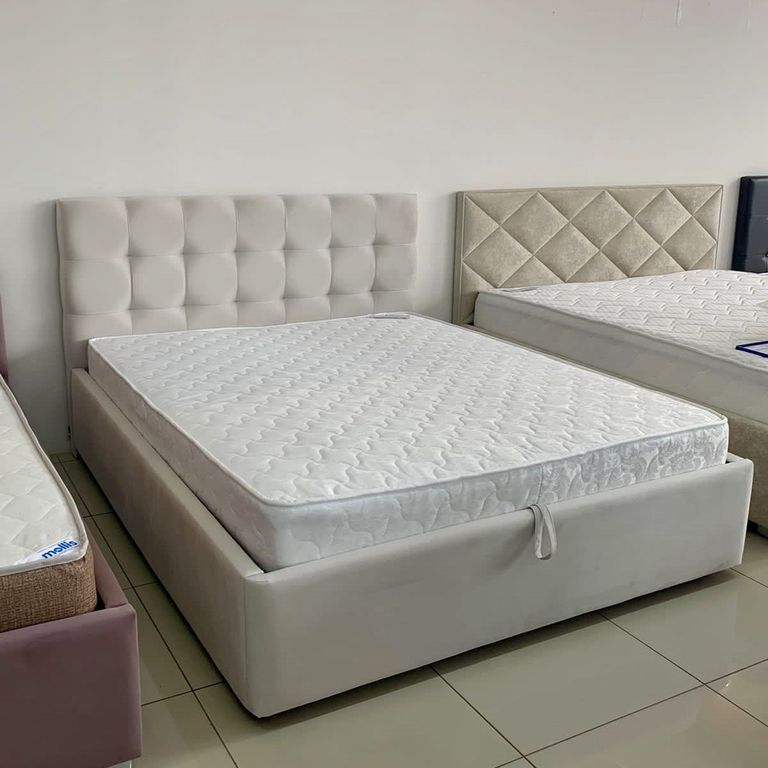 Вы можете заказать кровать с ортопедическим основанием, металлическим ортопедическим основанием, подъемным механизмом или основанием на высоких опорах.