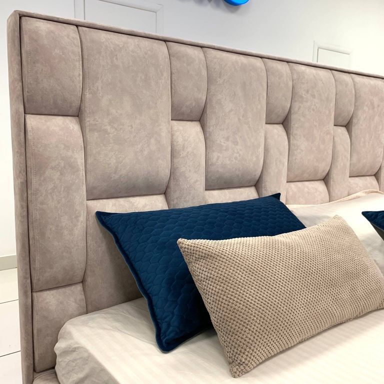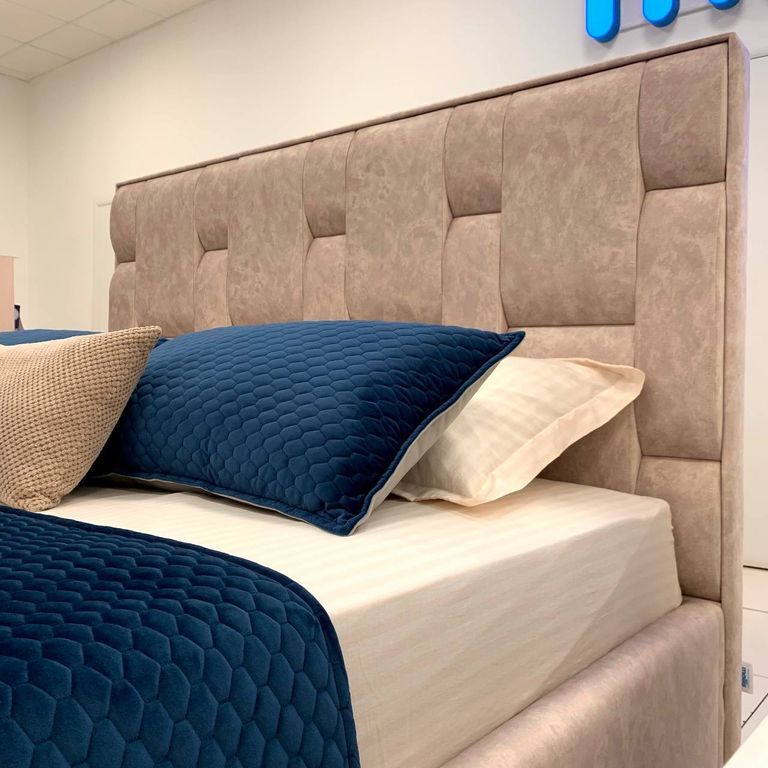 | Форма изголовья акцентирует на себе внимание, подчеркивая сдержанный образ. |