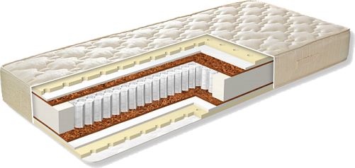 Высокая натуральность компонентов гарантирует идеальный микроклимат спального места и препятствует накоплению пыли. Наполнителем данной модели являются натуральный латекс, ортофайбер и кокосовая койра, благодаря которым достигается приятная средняя жесткость.