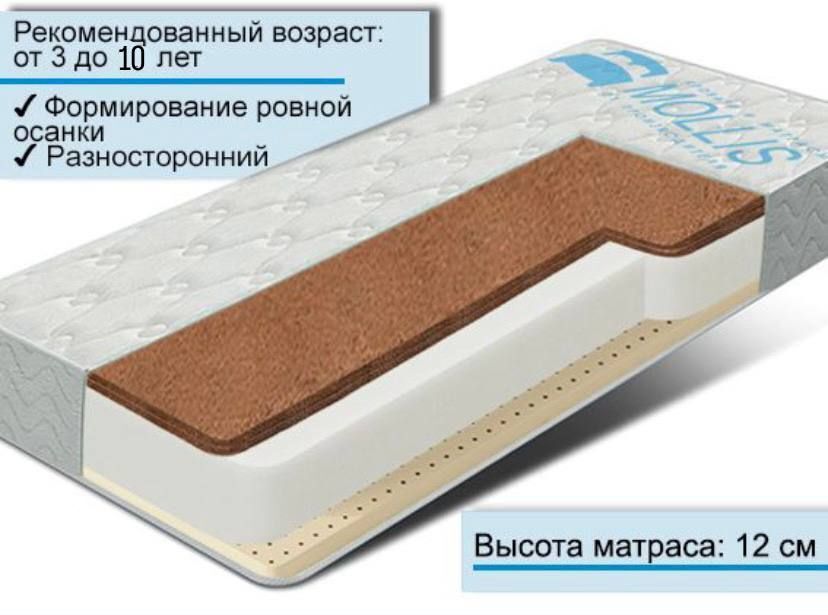 Матрас "Совенок" – основу матраса составляет высокоэластичная пена 8см, она заменяет собой пружинный блок. Высокоэластичную пену дополняет натуральный латекс. Эта спальная сторона сохраняет ниже среднего жесткость основного наполнителя, но она становится более анатомической и комфортной – хорошо подстраивается под тело ребенка и расслабляет. Вторая сторона усилена натуральной кокосовой койрой. Спать на ней полезно всем детям для формирования позвоночника и коррекции осанки. |
