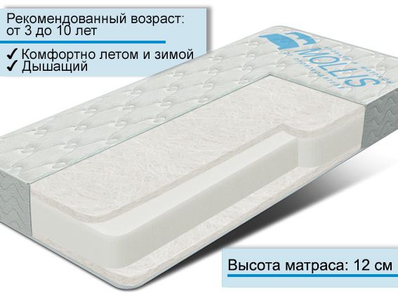 Беспружинный матрас рекомендованы детям от 3 до 10-12 лет, позвоночник которых еще формируется.