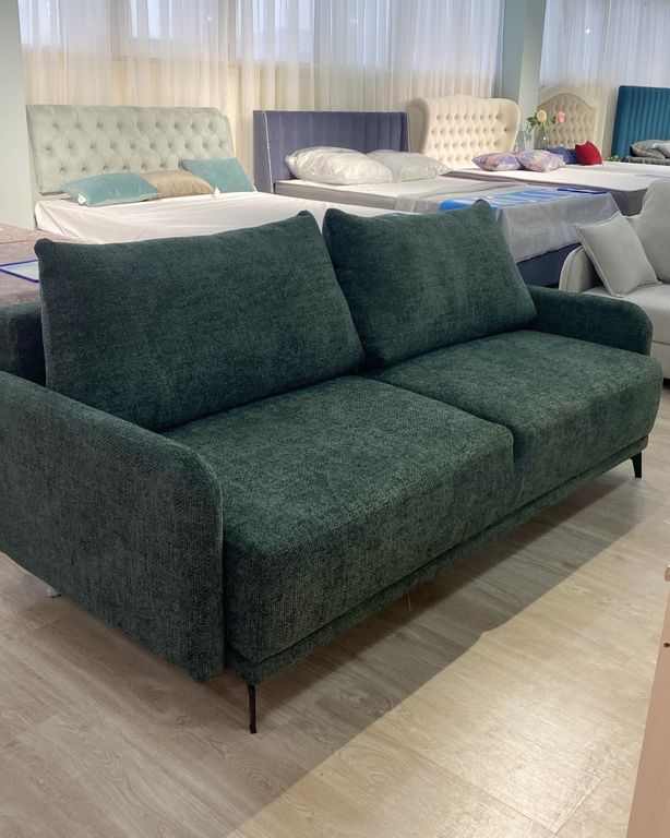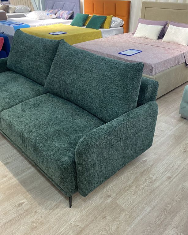 Общие габариты (см) - 204*97*Н73 Высота дивана (см) - 73 Высота сидения (см) - 44 Глубина сиденья (см) - 78 Подлокотники шириной (см) - 7 Спальное место: 140*190 см Высокие металлические ножки -12 см |